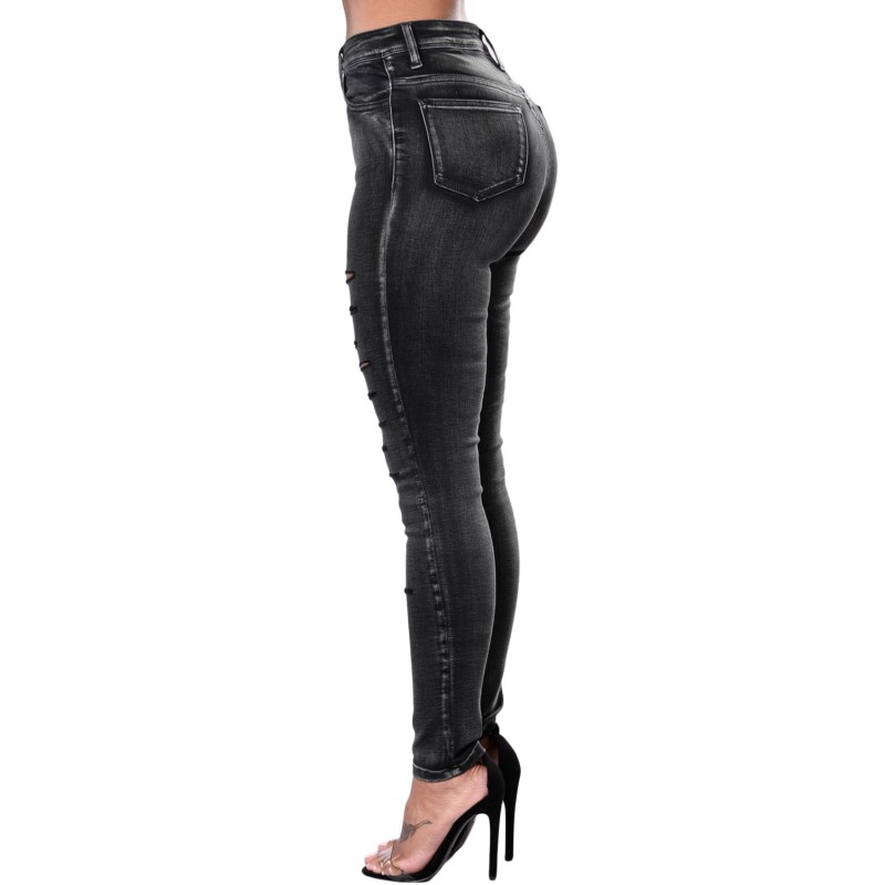 Specifications Product Name Black Faded Denim Wash Leg Ripped Skinny JeansItem NOLC786018-2Weight 0.5100 kg = 1.1244 lb = 17.9897 ozCategory Bottoms > JeansCreation time 2018-10-05Detail High-waisted skinny jeans for women Slashed detail on the front of both legsClassic 5-pocket design, zip fly and button closureMade of quality denim fabric wit..