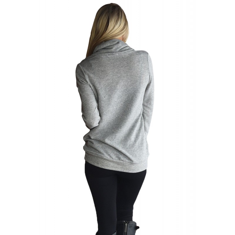 Product Name Gray Button and Zipped Cowl Neck Sweatshirt