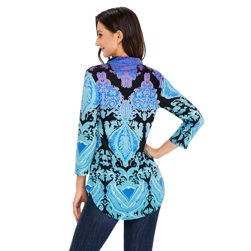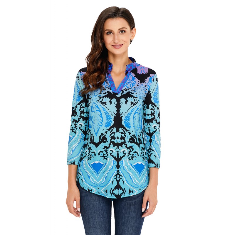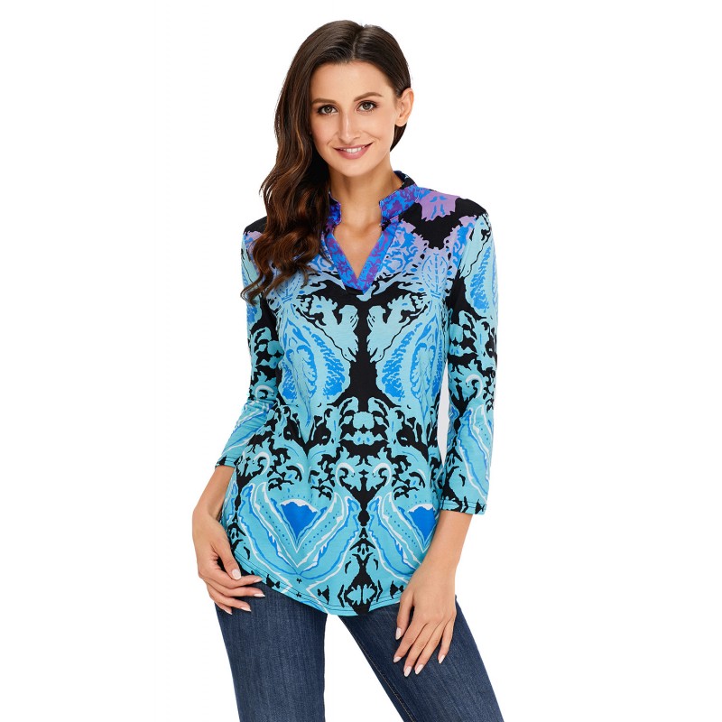 Specifications Product Name Turquoise Easily Obsessed Damask Print Split V Neck Tunic Item NO LC250279-9 Wei..